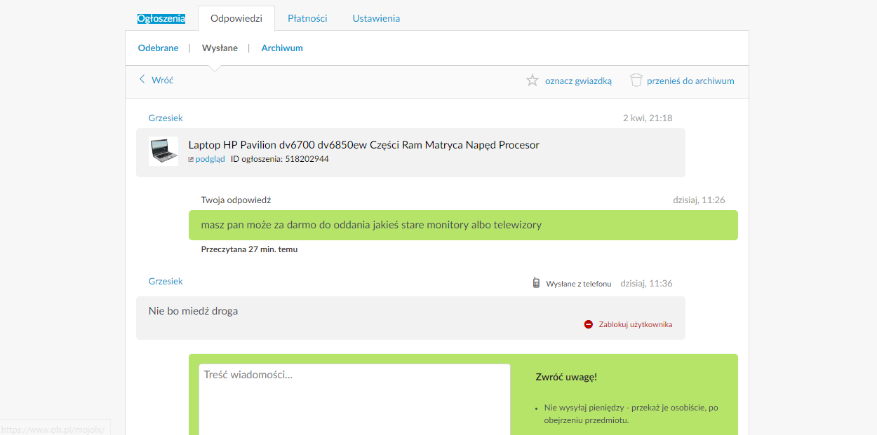 Komputer-stacjonarny komentarz 8 kwietnia 2019 Autor komentarz 8 kwietnia 2019 Gdy się ten monitor włączy do prądu to słychać takie bardzo ciche pykanie około 3 razy na sekundę i jak się go wyłączy z gniazdka to pykanie się stopniowo spolawnia i zaraz całkiem zanika i co to może znaczyć? Gdyby był popsuty kineskop i gdyby go podmienić z trochę mniejszego popsutego monitora który obsługuje mniejsze rozdzielczości to czy taki monitor by działał? Jest okazja bardzo podobny monitor za 10 złoty ale 10 kilometrów stąd. Mam tylko rower i taczki żeby go pzywieźć. Czy w ten sposób można go bezpiecznie przetransportować. Czy gdyby były wstrząsy to mógłby się popsuć po drodze? Chcę go kupić na zapas. Na monitory CRT źle służy czas to czy tak samo by po kilku tygodniach się zepsuł? Czy warto taki monitor trzymać latami na zapas?