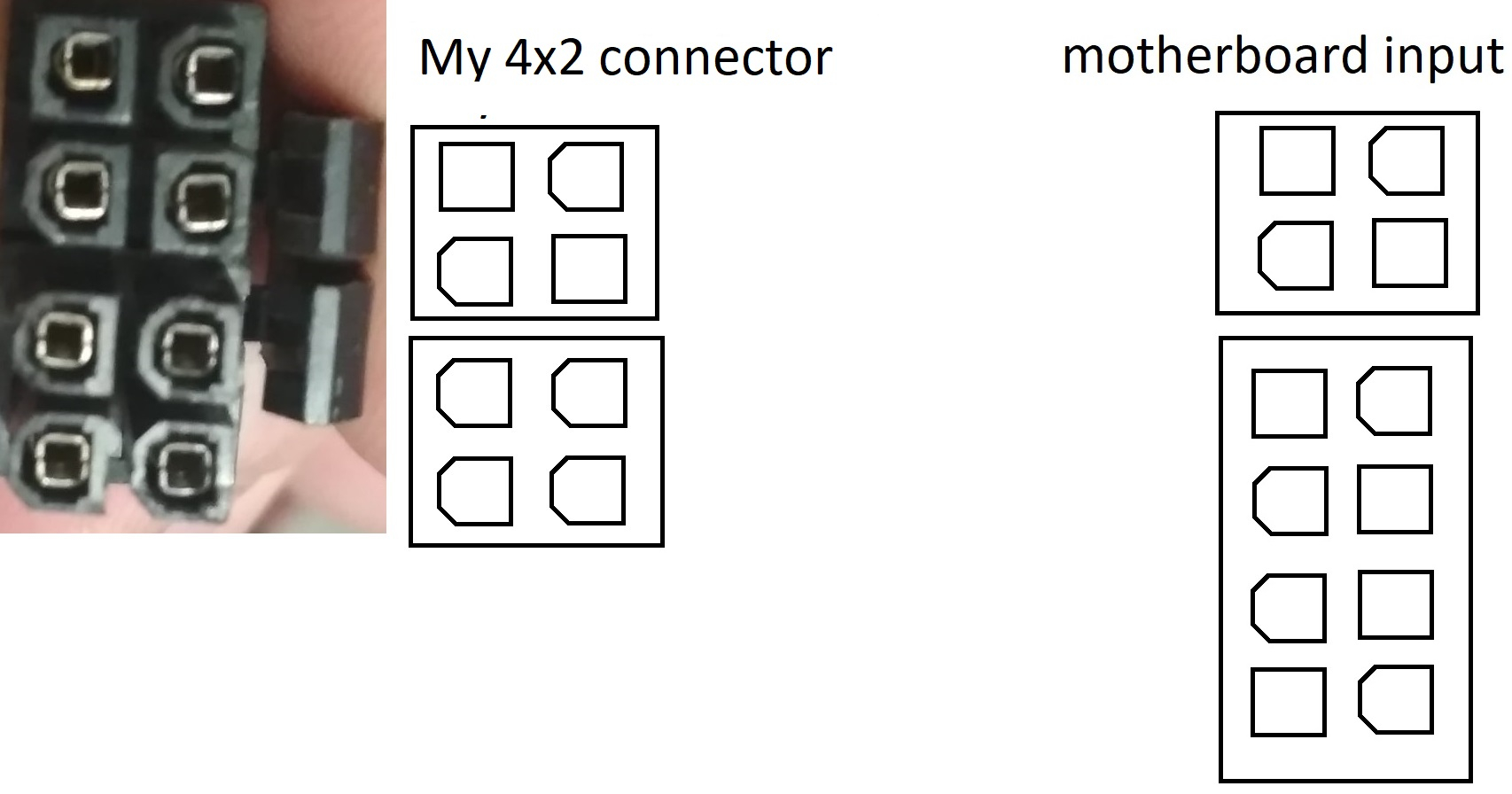 razor851 utworzono 24 września 2019 utworzono 24 września 2019 Mam płytę Asus X570 Tuf Gaming Plus i zasilacz OCZ ZS Series 550W. Mam tylko takie wyjścia na zasilaczu dla procesora (załącznik) (https://imgur.com/a/LXJPnu8) (https://obrazki.elektroda.pl/6099214100_1569322003.jpg). Wiem, że muszę podłączyć co najmniej 8pin dla procesora, ale nie wiem, czy wejścia w moim obecnym zasilaczu są odpowiednie dla tej płyty. Powinienem: 1Połącz to, co mam tylko 4pin pasujące albo 8pin 2.Poszukać adaptera 3.Zmienić zasilacz 4.Inne?